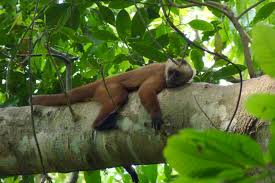 However, seeing these two species together, Simia sciureus and Cebus apella, is not uncommon. In fact these two very different species form stable interspecific interactions and are seen to benefit from the presence ofthe other. These two species feed and travel together, even responding to one another’s alarm calls.